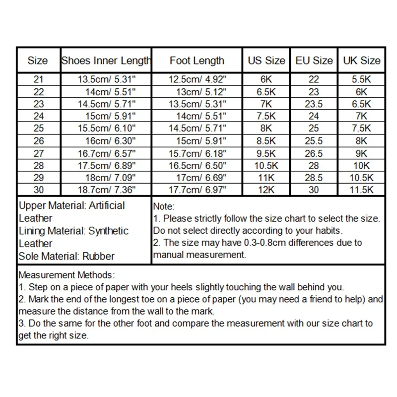 Size 30: Shoes Inner Length 18.7cm(7.36"), Suitable For US Size: 12K, EU Size: 30, UK Size: 11.5K