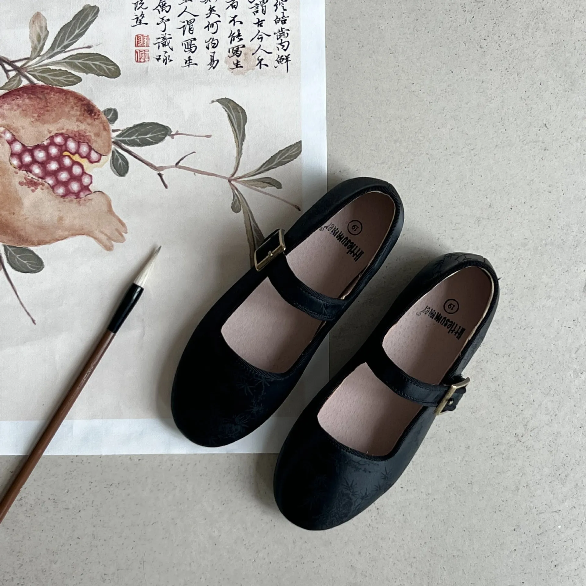 Chinoiserie Girls Flats Shoes Exquisite Embroidery Fashion Mary Jane Children's Casual Shoes Kids Shoes for Cheongsam
