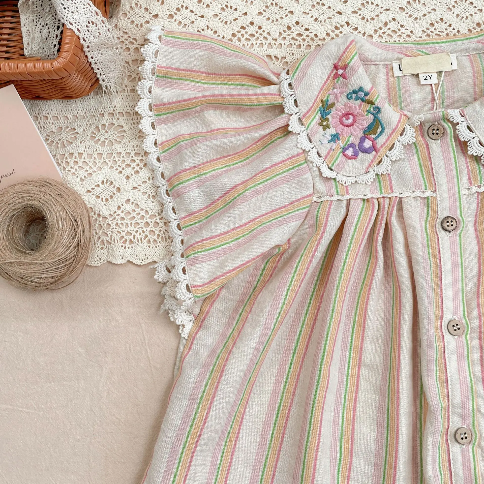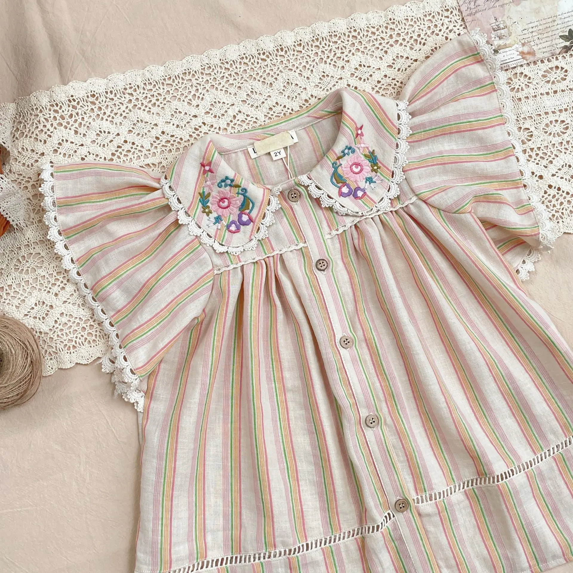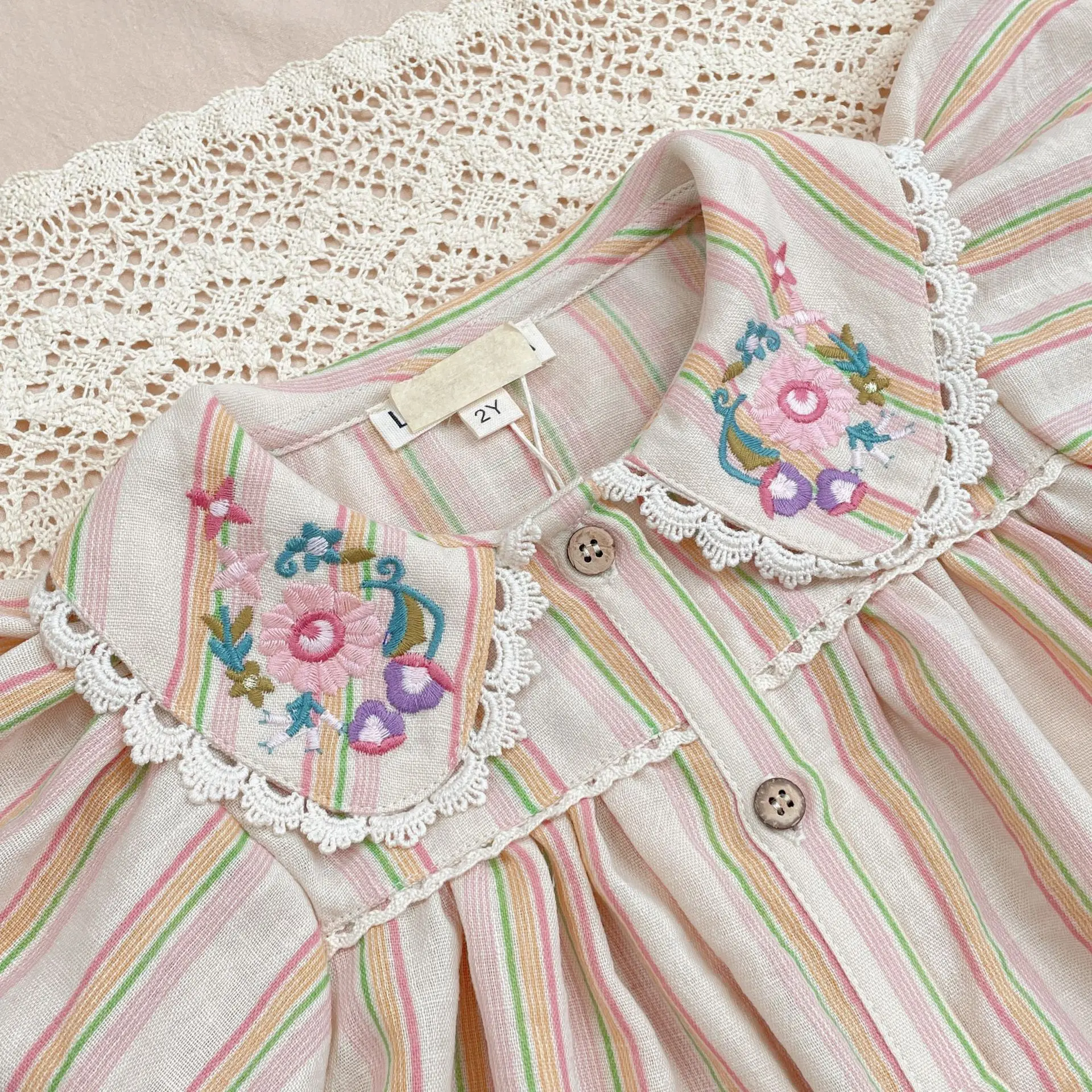 Colección Vestido de verano estilo étnico bordado sobre rayas para niña