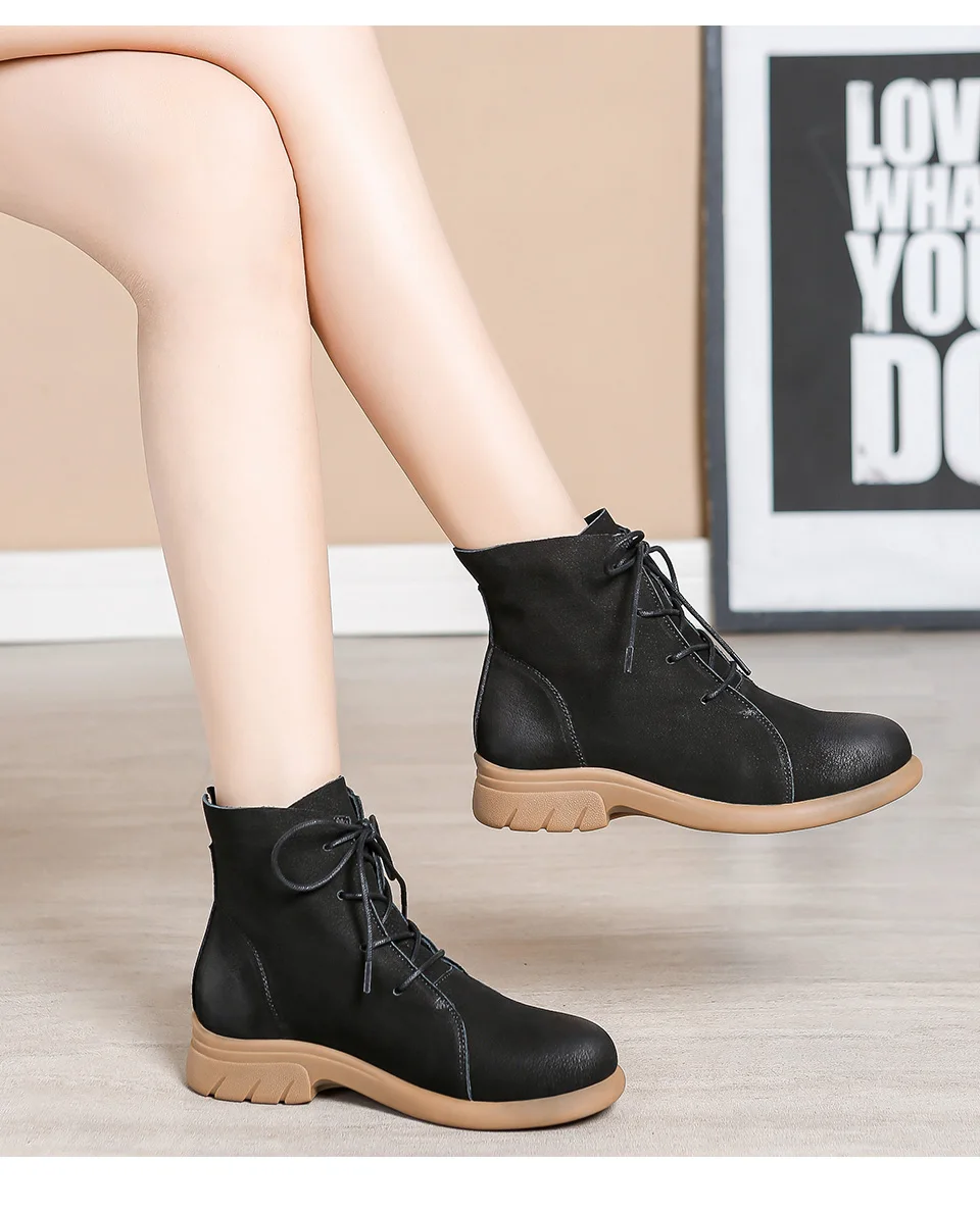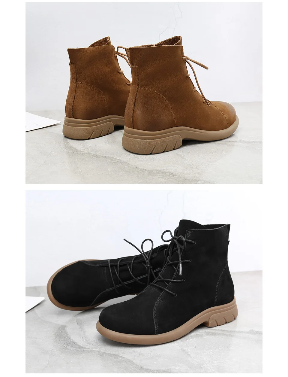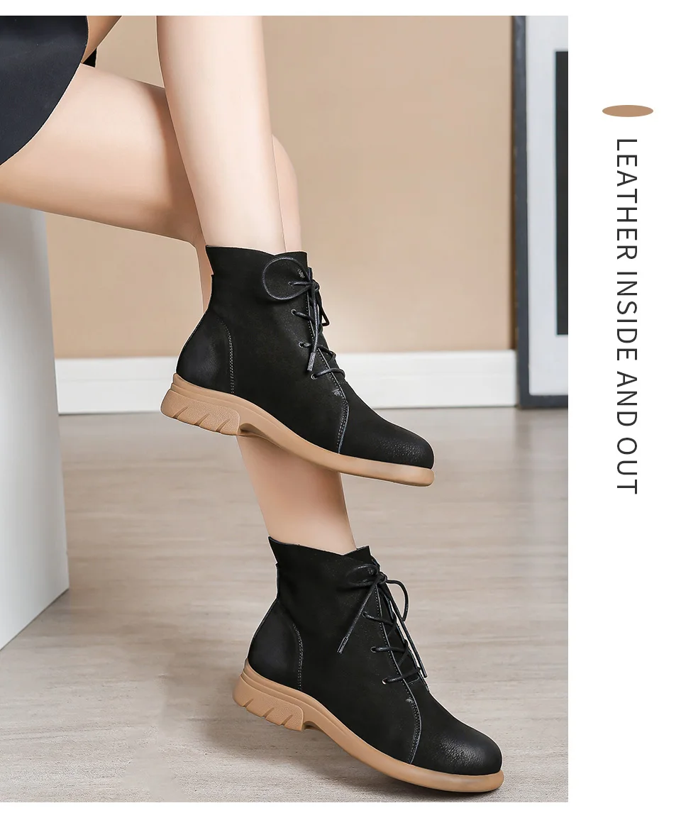 Botines de piel con suela blanda de cuero auténtico, suaves y abrigadas botas para otoño, invierno y toda estación