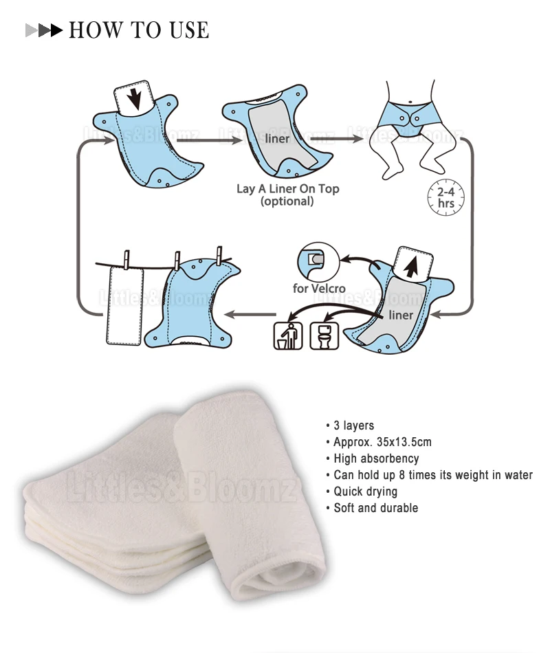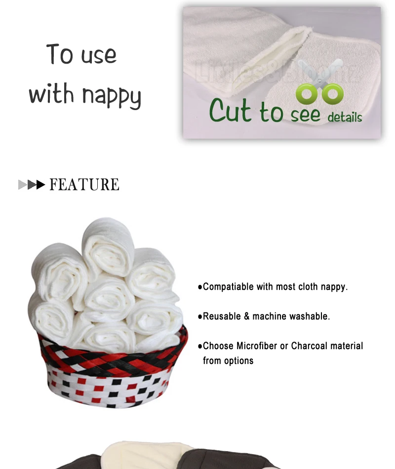 10 insertos reutilizables y lavables para pañales de tela de bolsillo, inserto de microfibra de carbón de bambú.