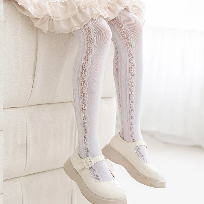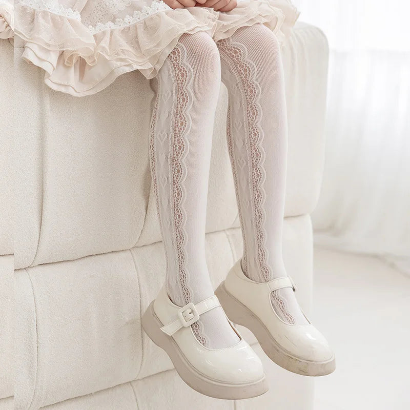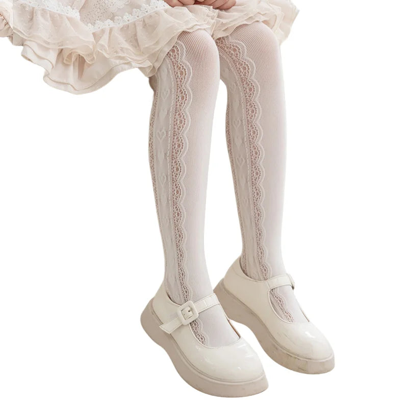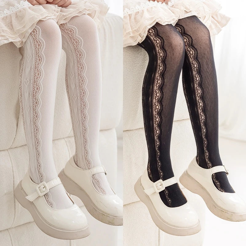 Medias finas y transpirables para niña, con calado al costado, pantimedias de malla de princesa