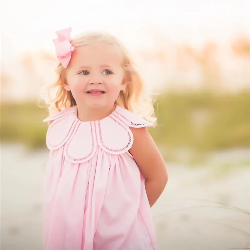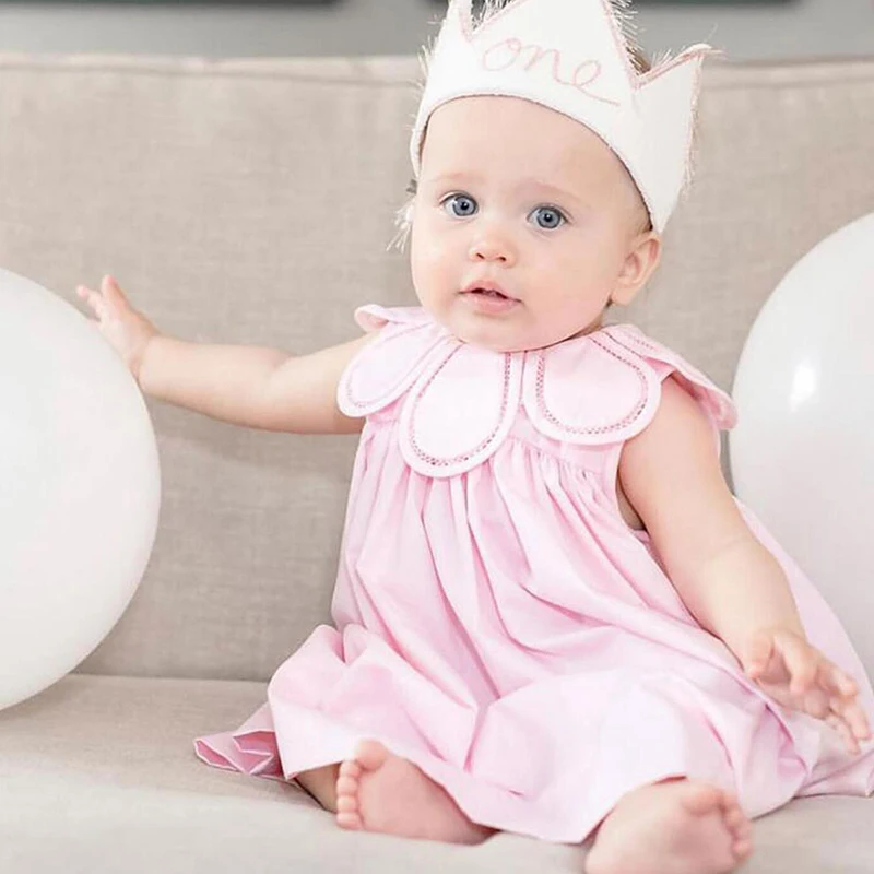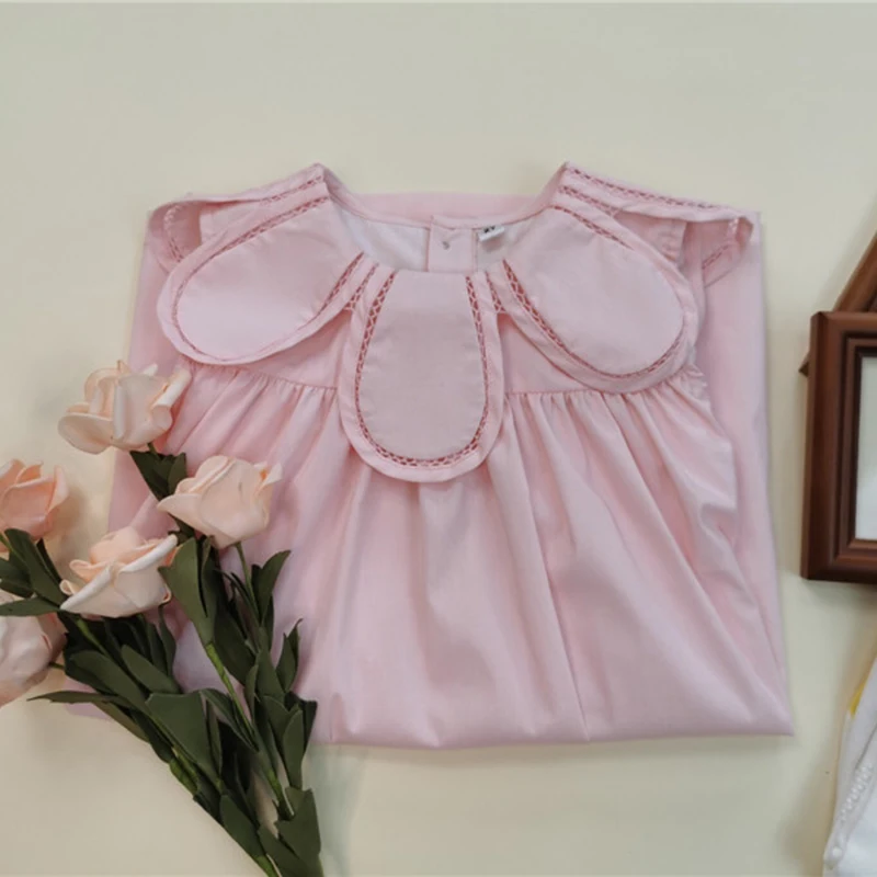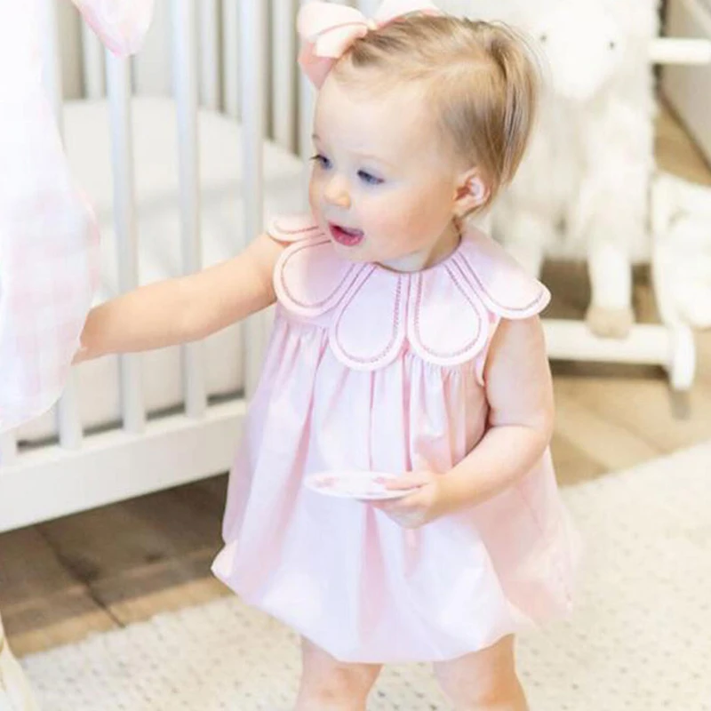 Vestido fruncido estilo real para niñas, bonito vestido con cuello de muñeca, Bombacho para bebé niña, cuello bordado, ropa para hermanas