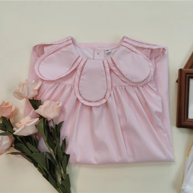 Royal Style Girls Smocked Dress Cute Doll Collar Kids Vest Dress Vestidos Newborn Baby Girls Lace Romper Sister Clothes