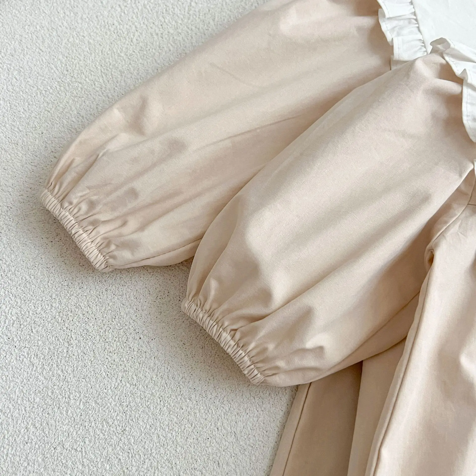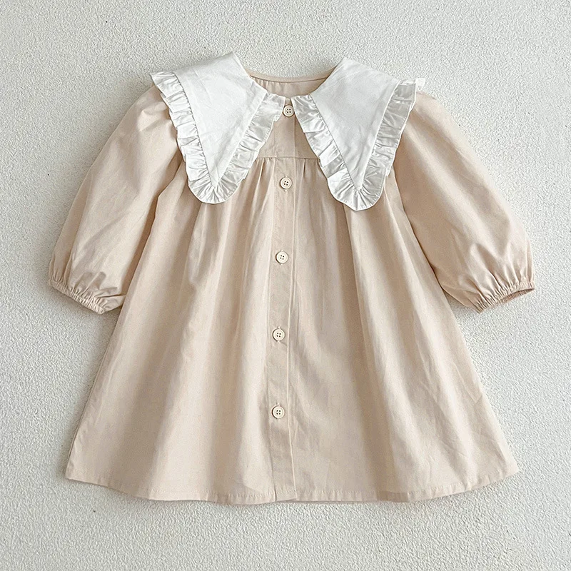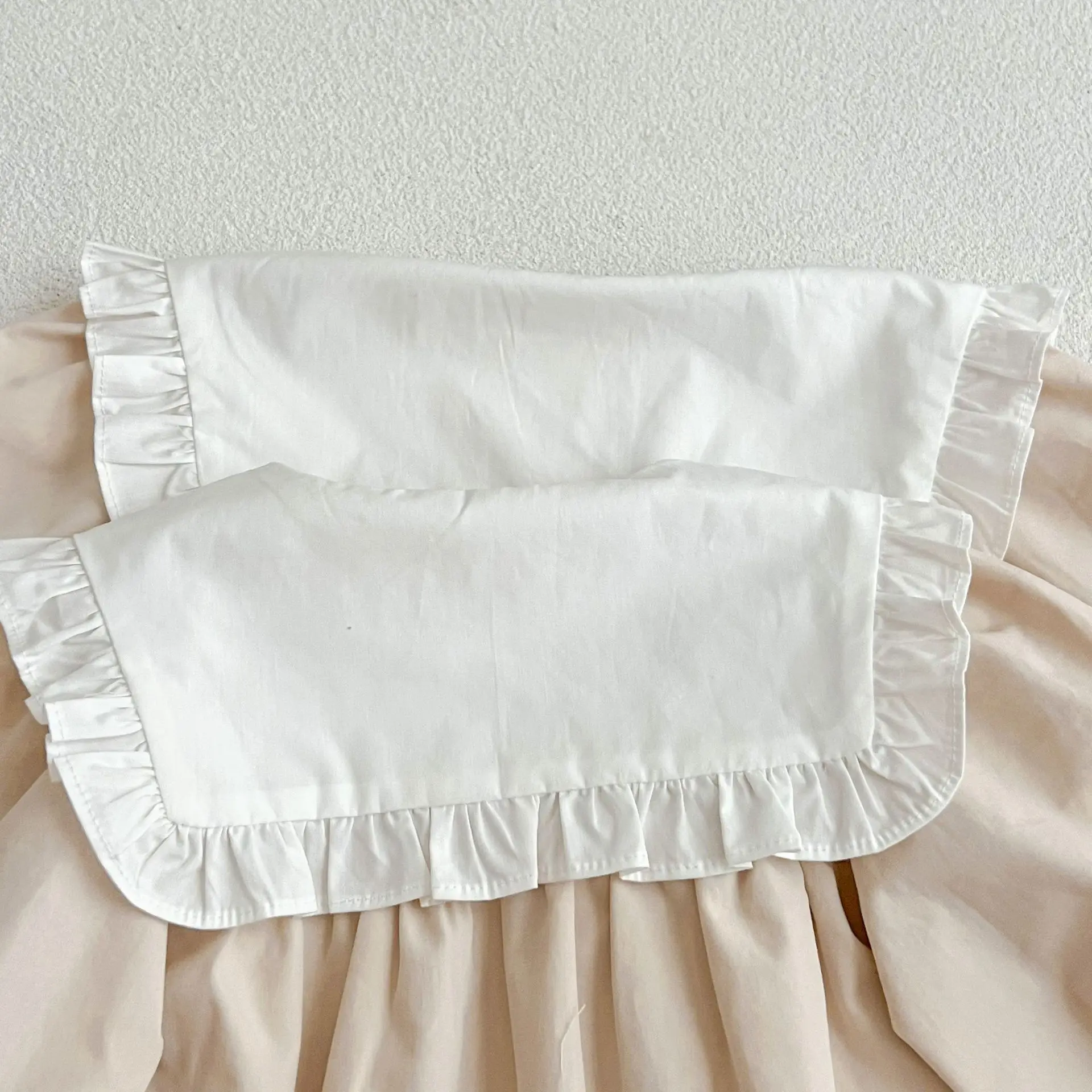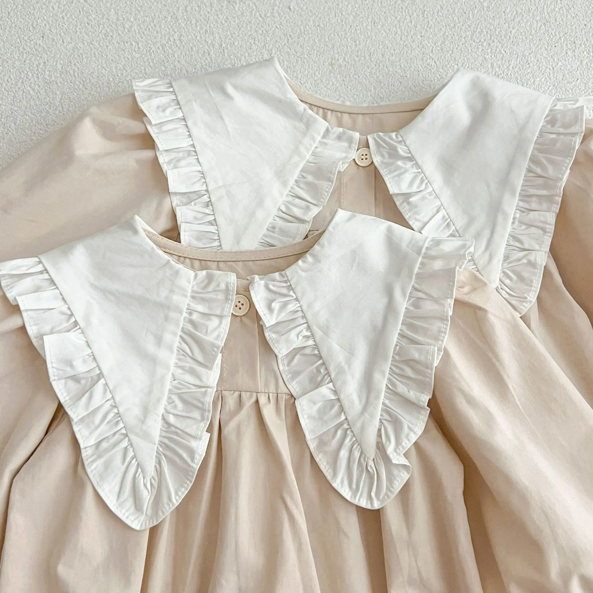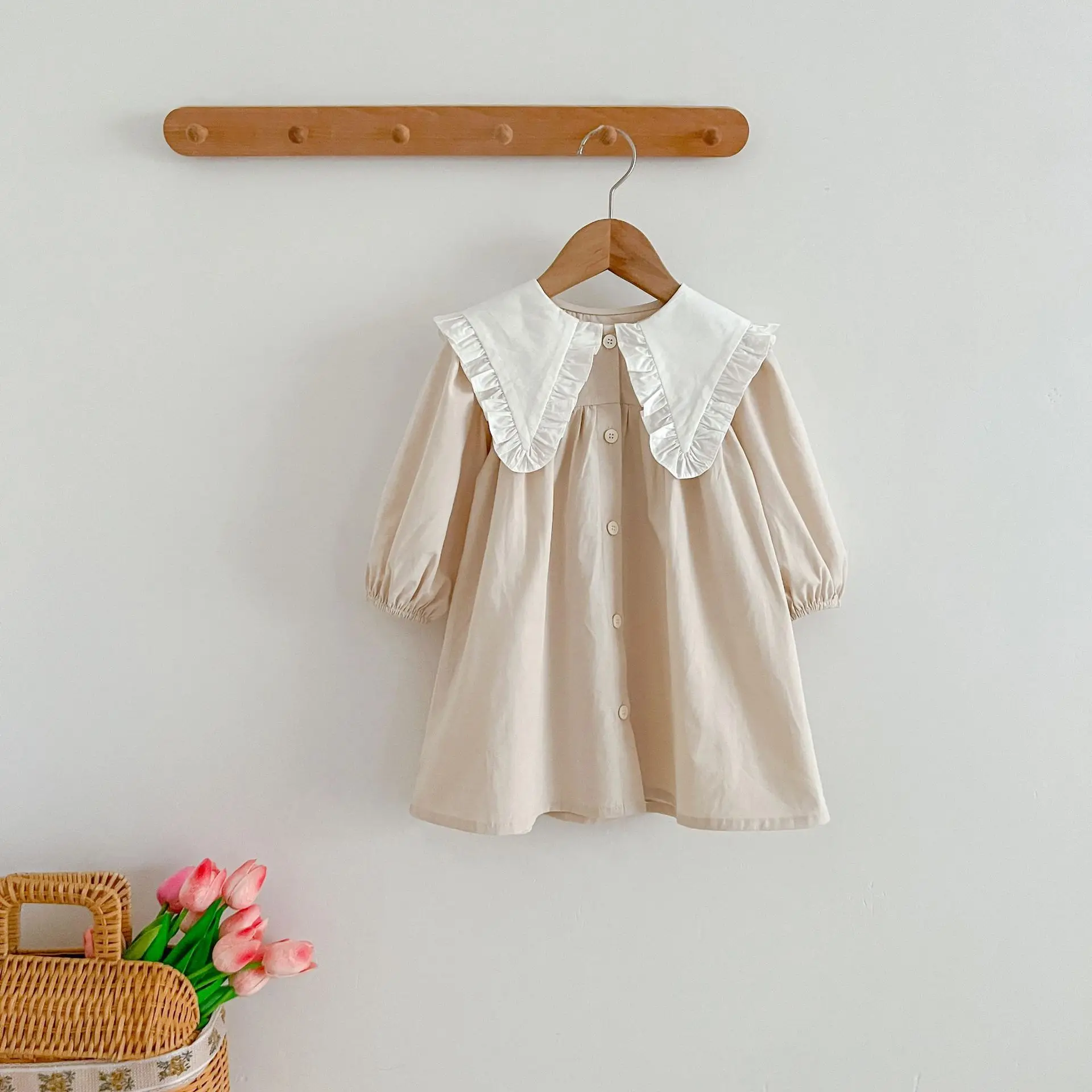 Vestido de hermoso colorido champagne con cuello blanco de muñeca, manga larga para niñas, para primavera y otoño,