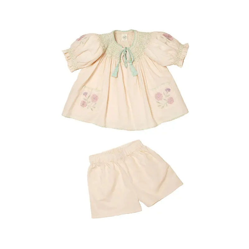 Trajes boho para niña, Conjunto de chaqueta y pantalón corto, traje de dos piezas, ropa para niñas estilo pastoral