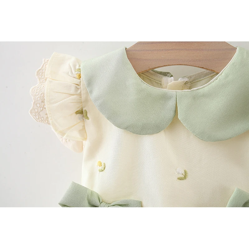 Para amar este vestido! Vestido de verano para niña, con lindas cerezas, cuello Peter Pan y mangas con volantes, outfit vintage para niña