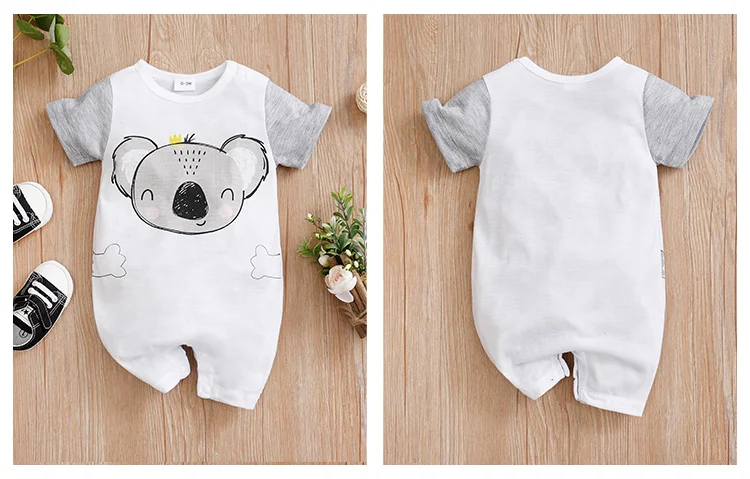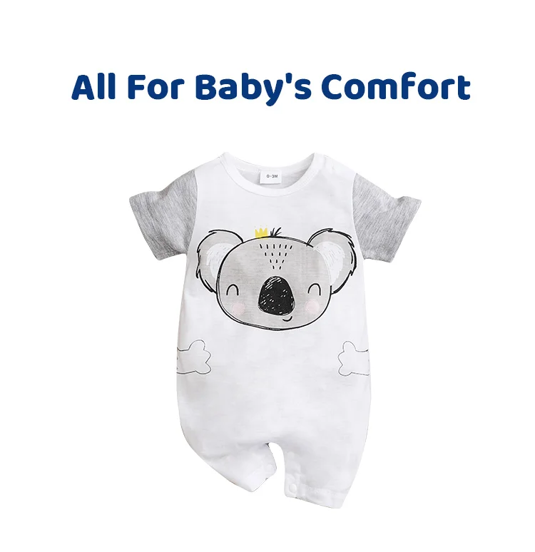 Body de bebé de manga corta cómodo e informal con estampado de koala de dibujos animados para niños y niñas de verano