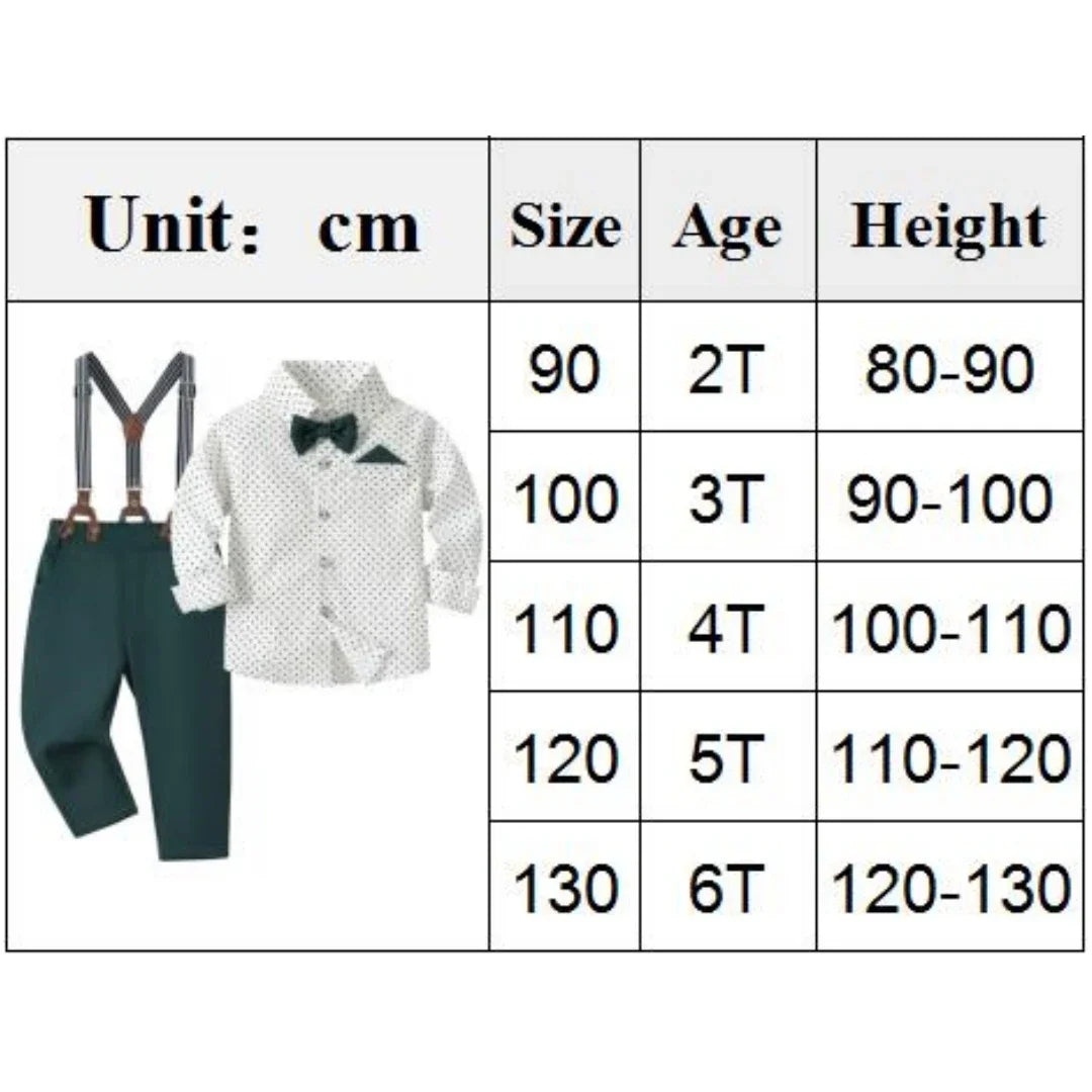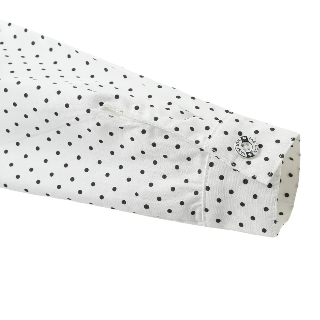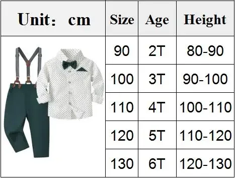 Traje de caballero de primavera y otoño para niño, Camisa estampada de lunares, outfit de fiesta o cumpleaños para niño