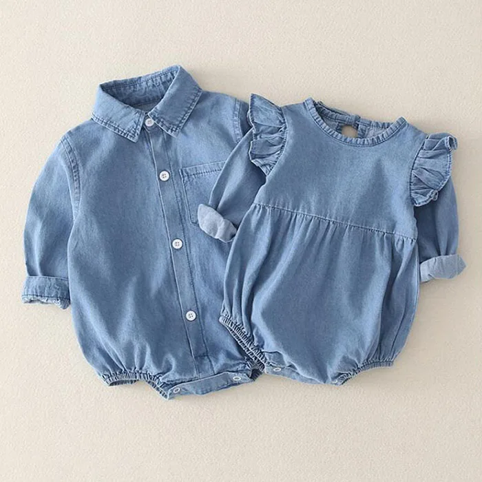 Hermosos mamelucos de mezclilla para bebés, niños y niñas, ropa para hermanos y hermanas, primavera y otoño, mono para niños pequeños