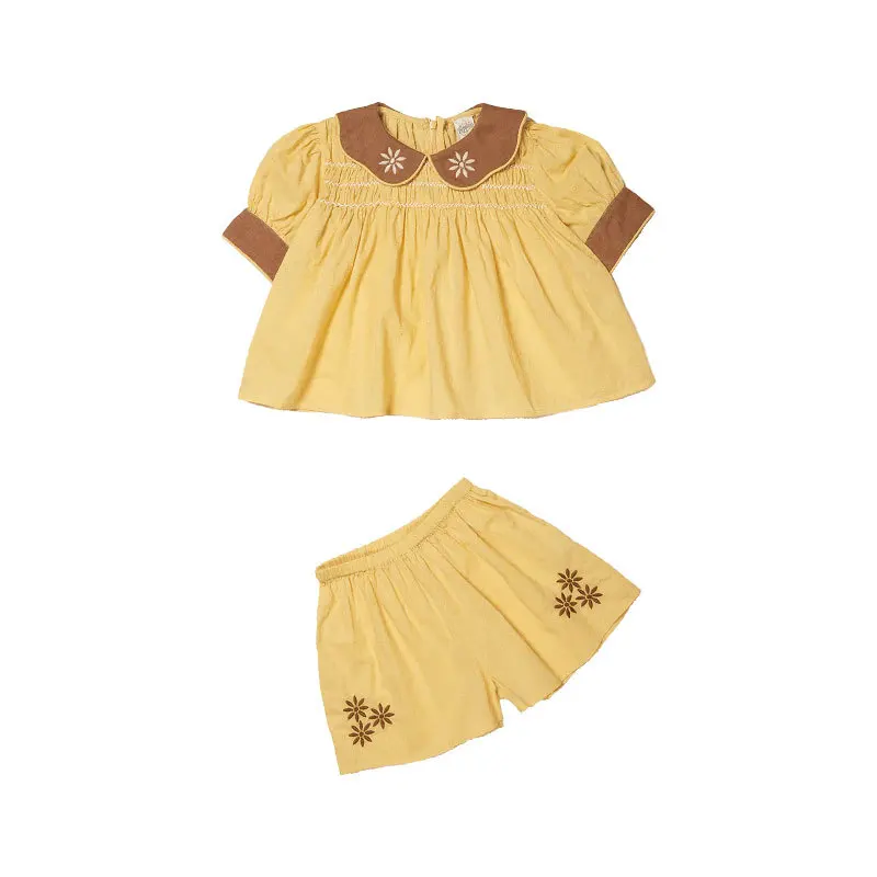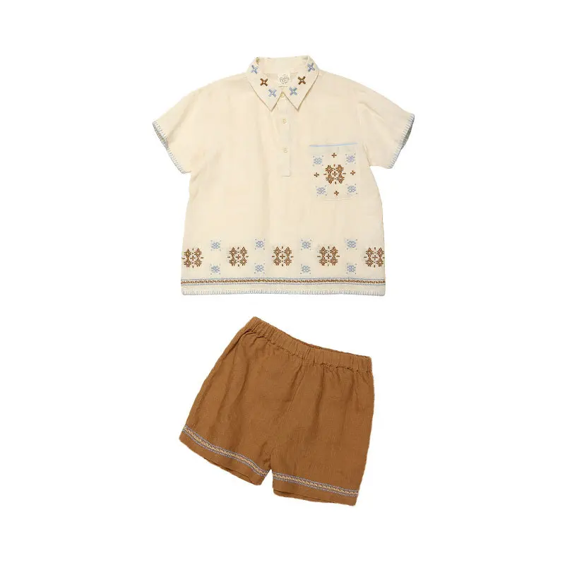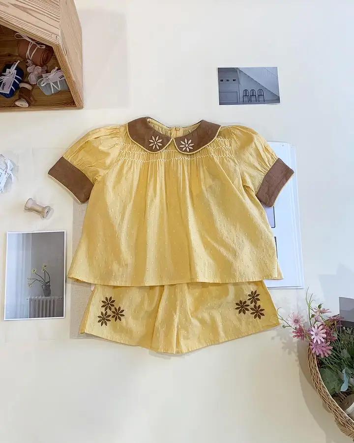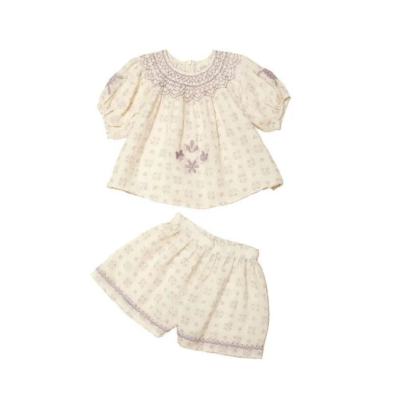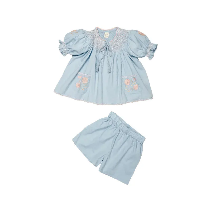 Children's Set 2024 APO New Summer Girls' Blouse Heavy Embroidery Shirts Shorts Pants Suit Kids Clothings Top sets