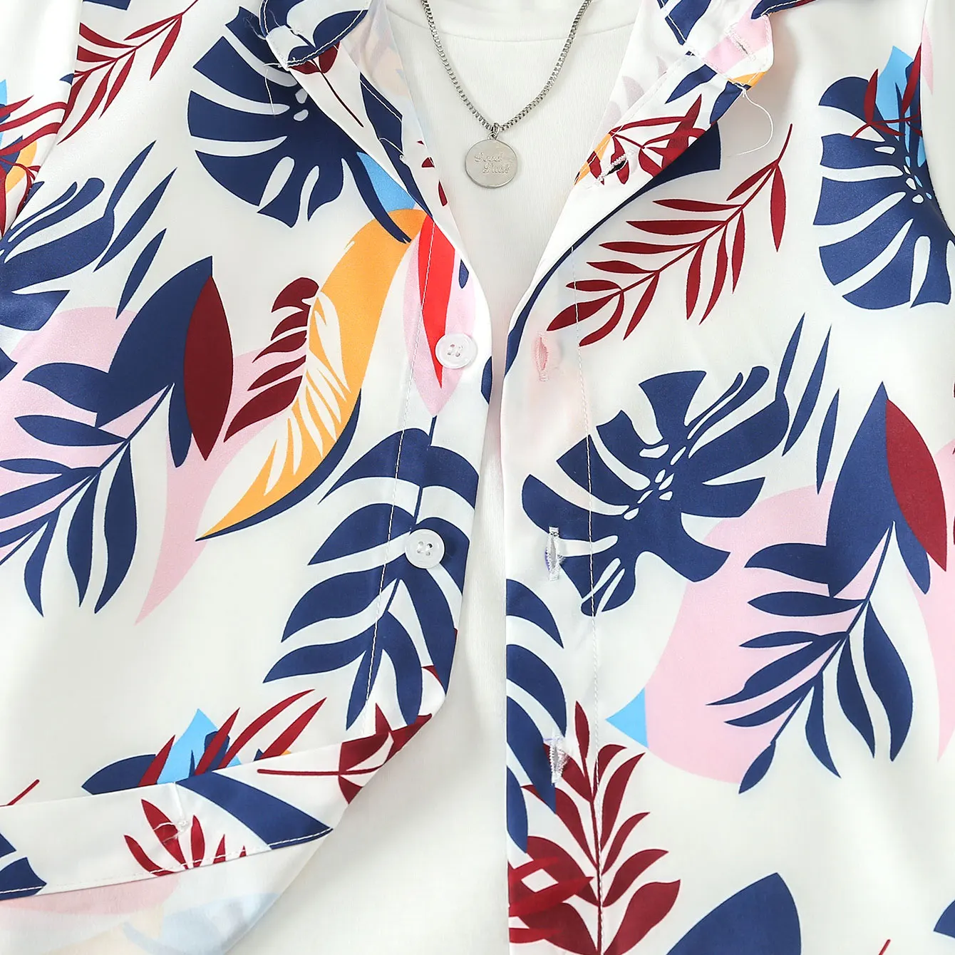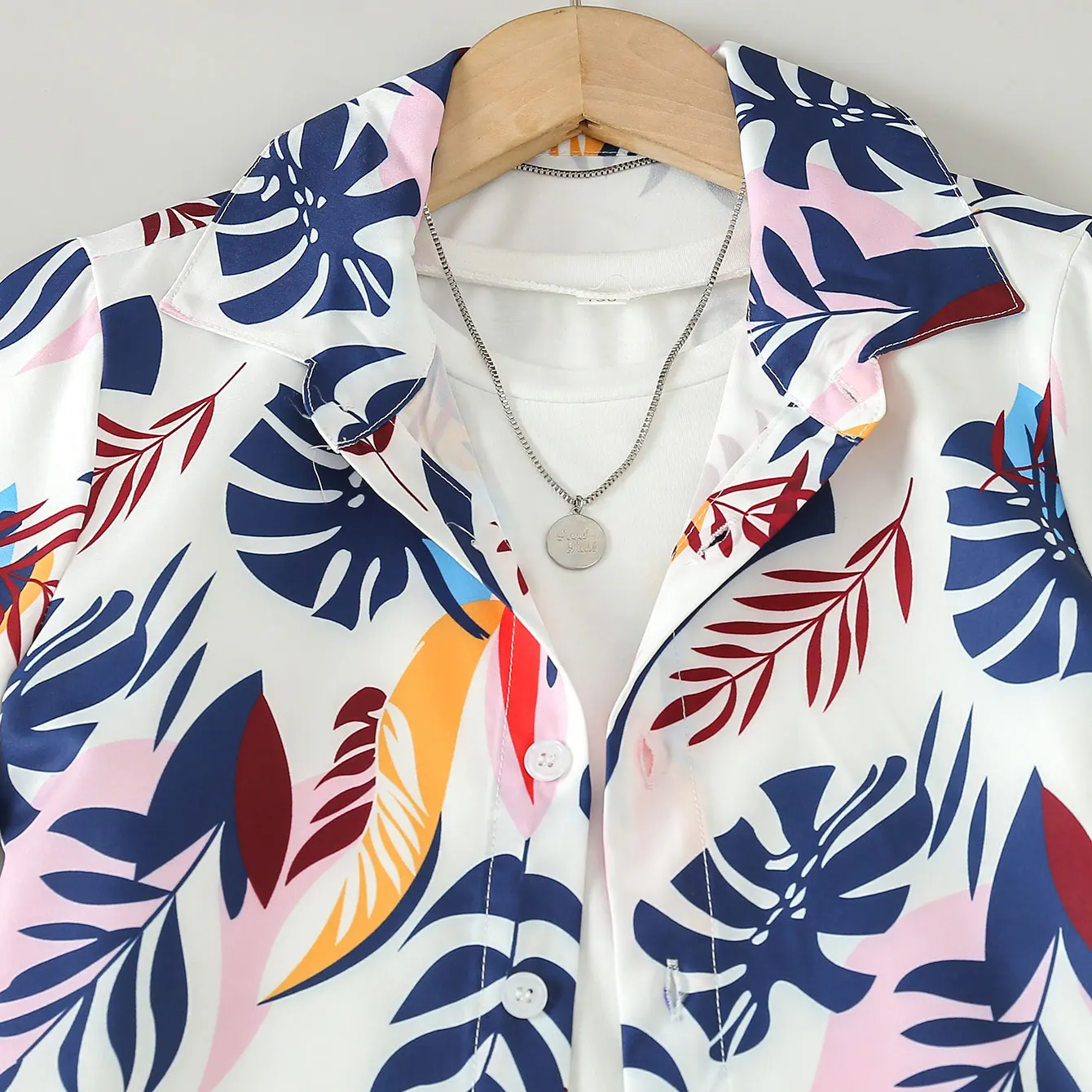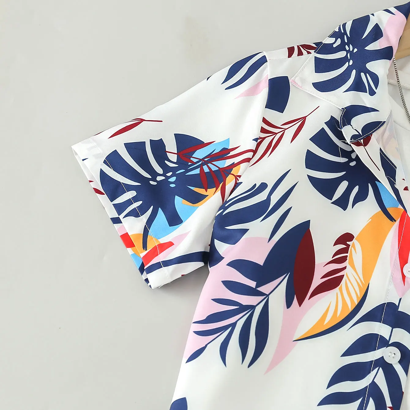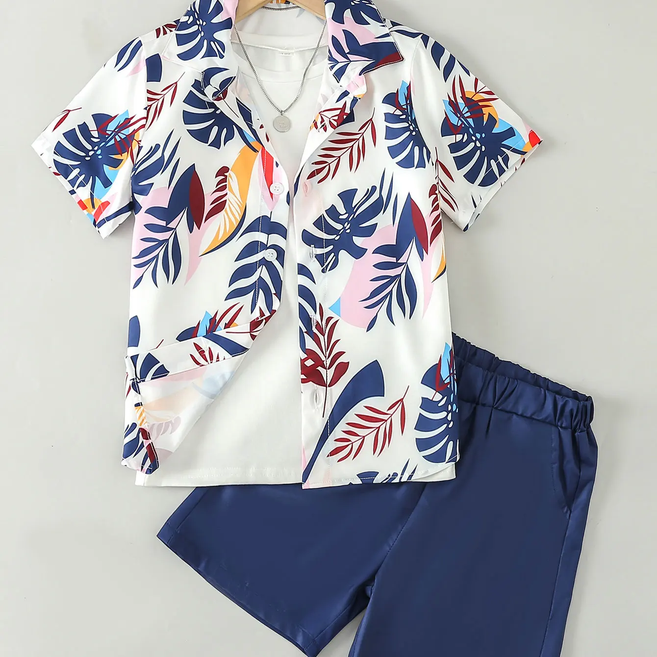 Conjunto de camisa de manga corta con estampado de hojas de palma y short, para verano para niños y adolescentes