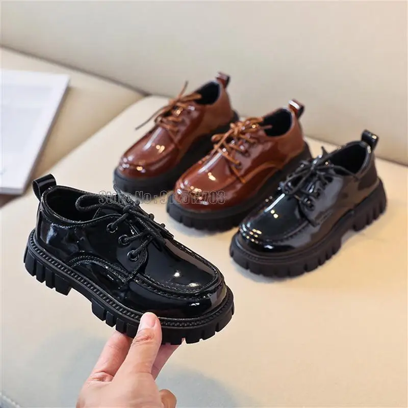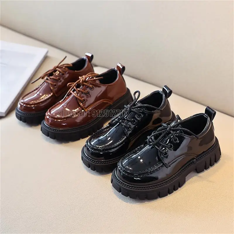 Girls Boys Leather Solid Black Kid Spring Autumn Baby Casual School Style Children Shoes