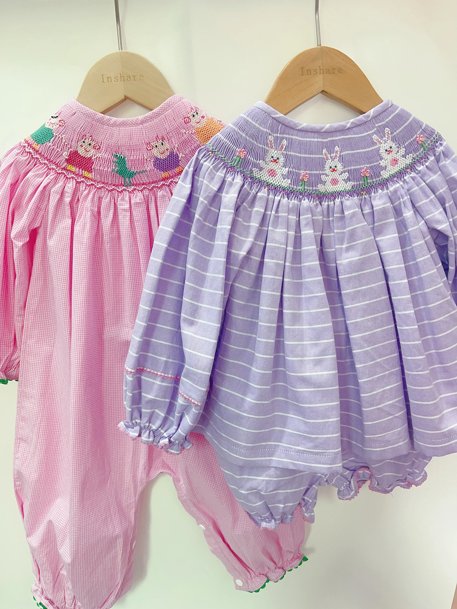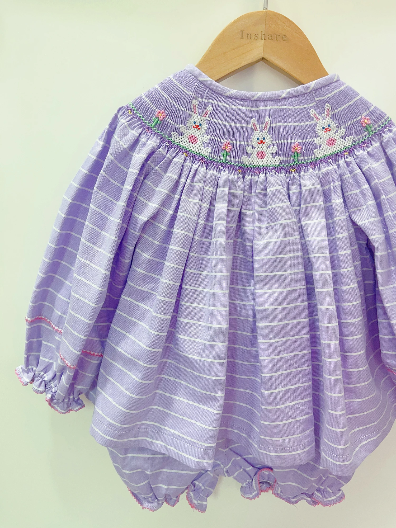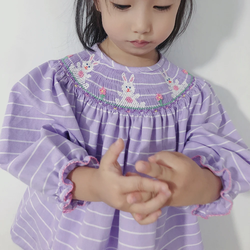 Conjunto de blusa manga larga y bombacho corto para niñas, bordado a mano estilo vintage, algodón puro tipo Oxford