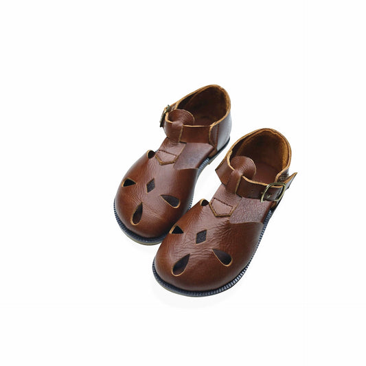 Sandalias de cuero genuino para niñas y niños, estilo retro de verano