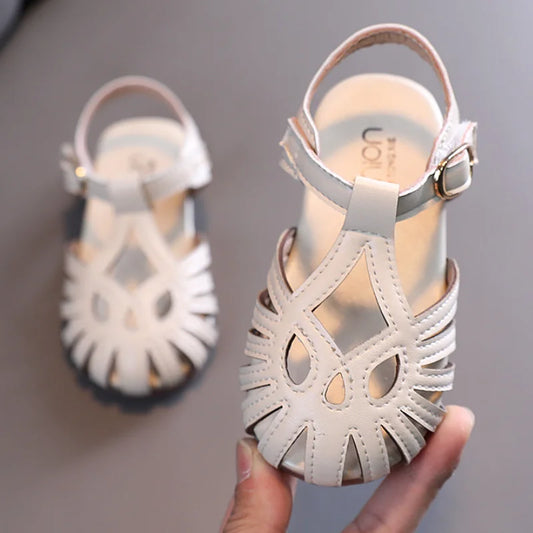 Sandalias de suela blanda para niñas, de verano con tiras en T y punta cerrada para niñas pequeñas, sandalias de playa antideslizantes