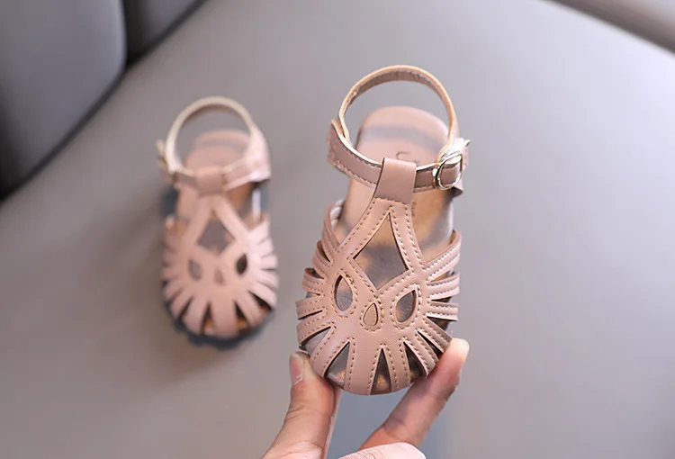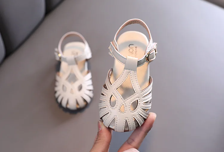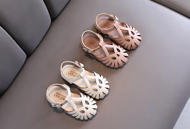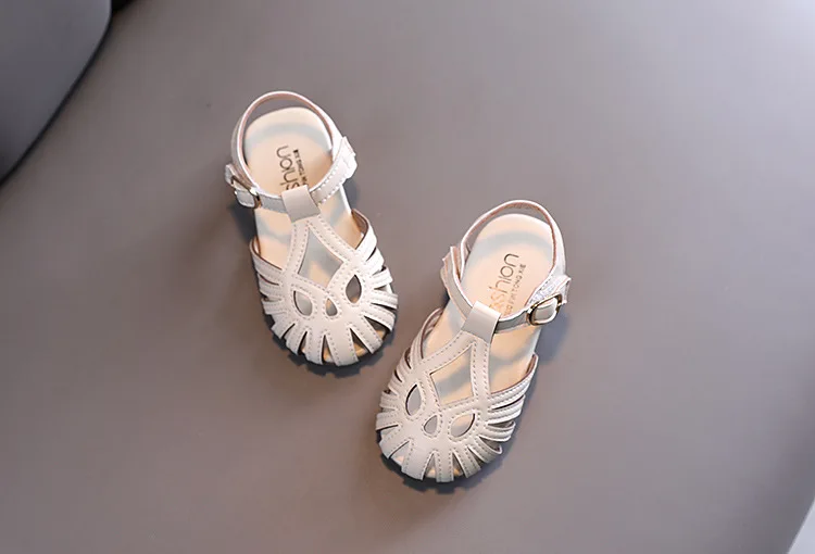 Sandalias de suela blanda para niñas, de verano con tiras en T y punta cerrada para niñas pequeñas, sandalias de playa antideslizantes