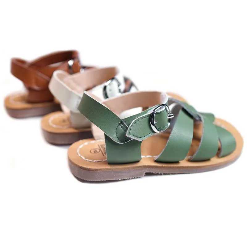 Sandalias de cuero para niños para agua salada, Sandalias de playa para niñas de cuero genuino de alta calidad Suela antideslizante 6T