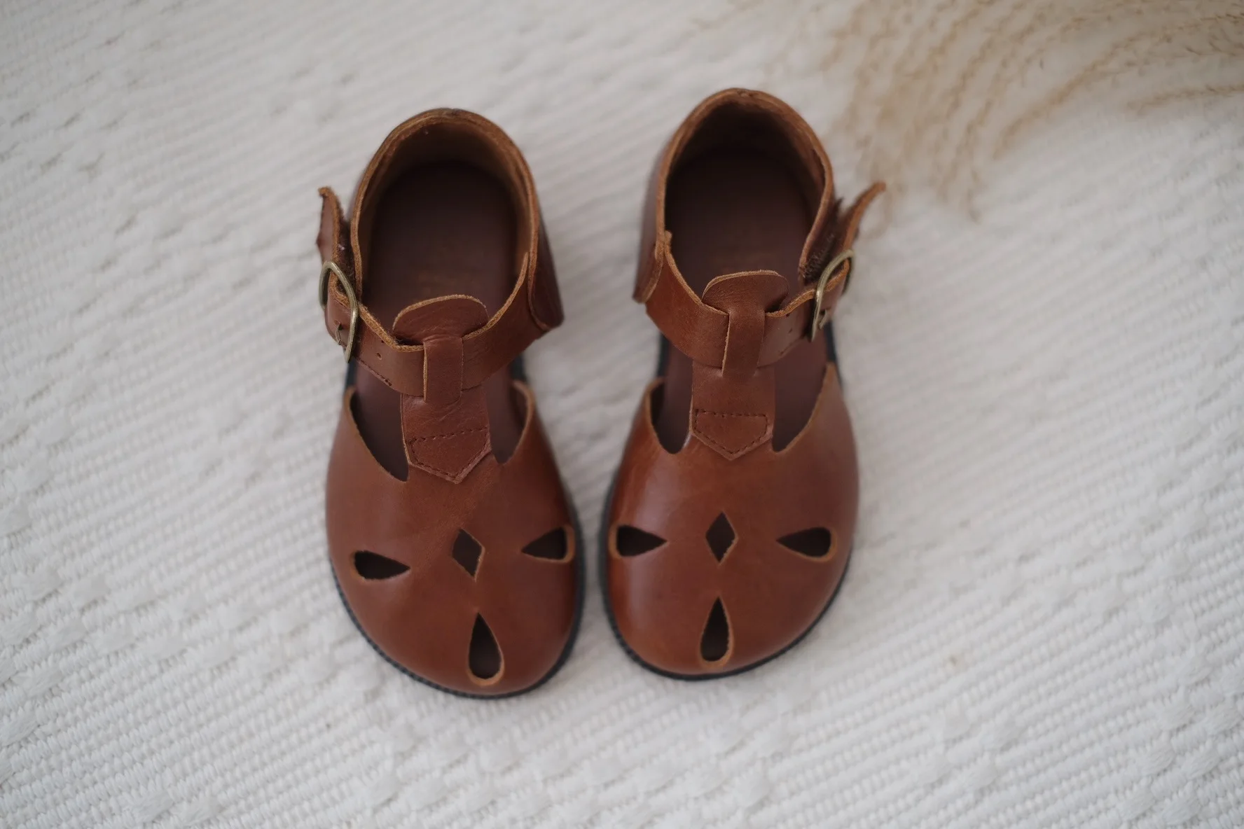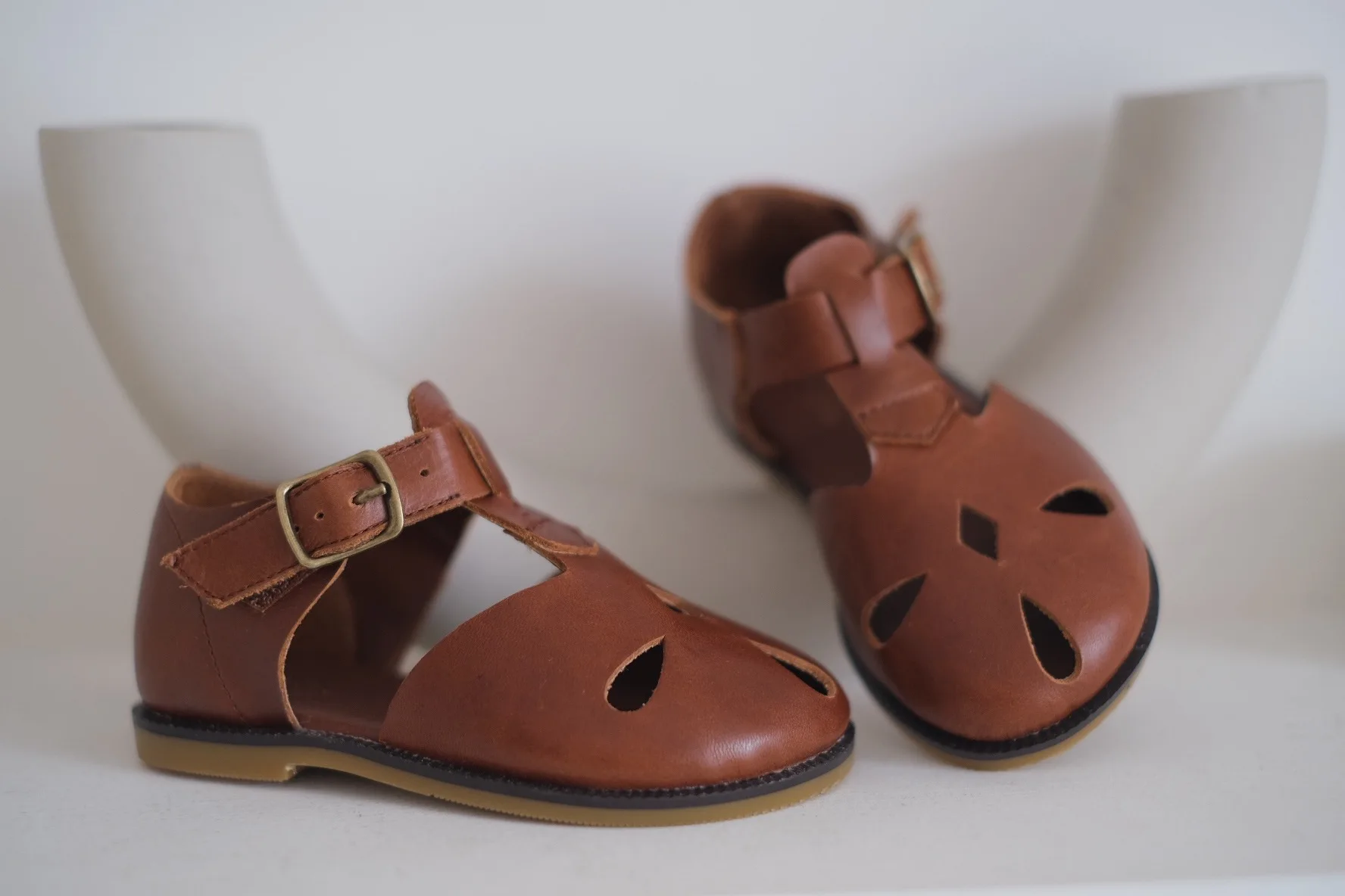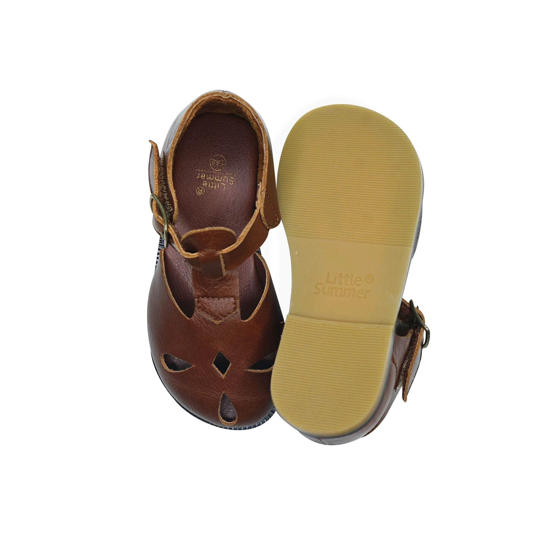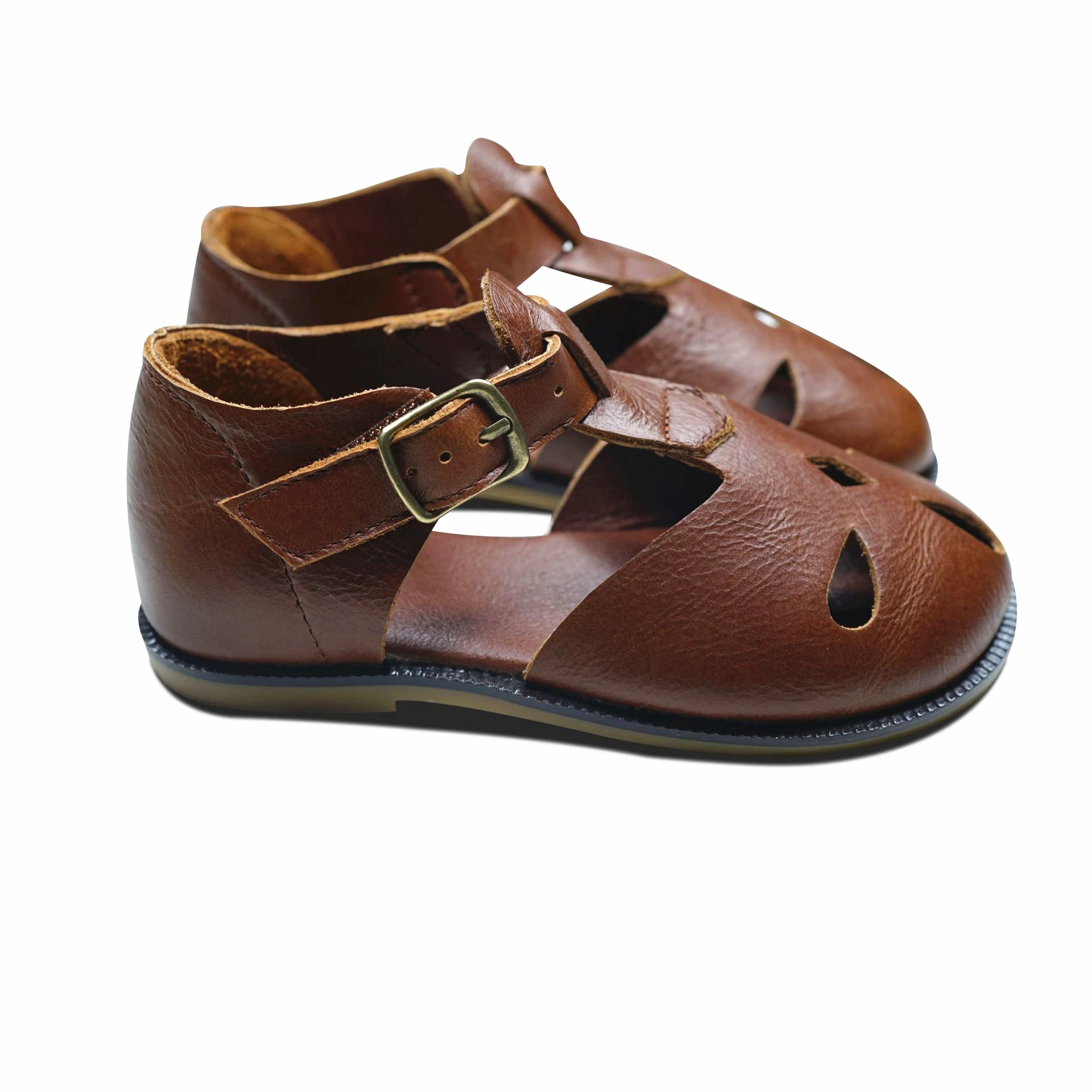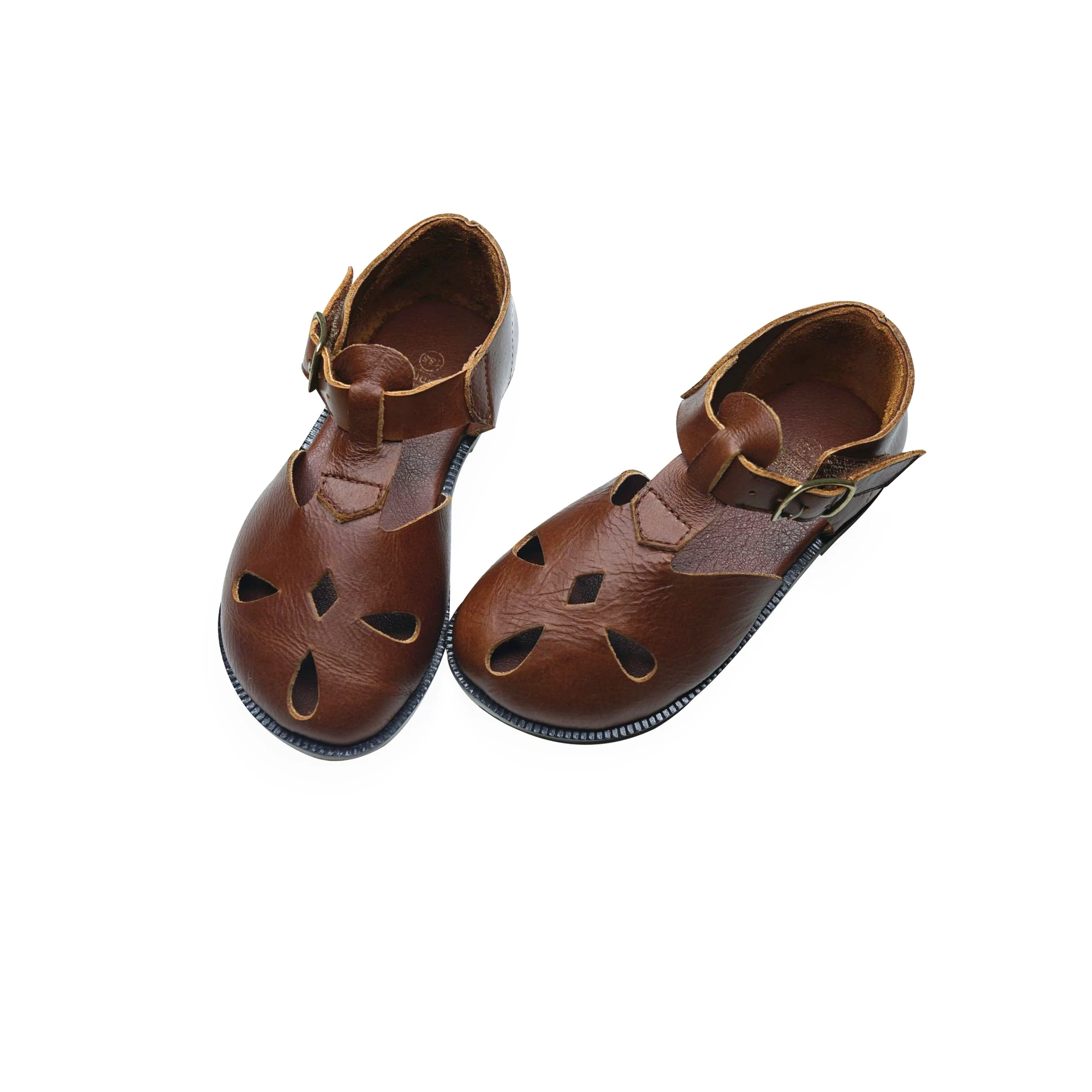 Sandalias de cuero genuino para niñas y niños, estilo retro de verano