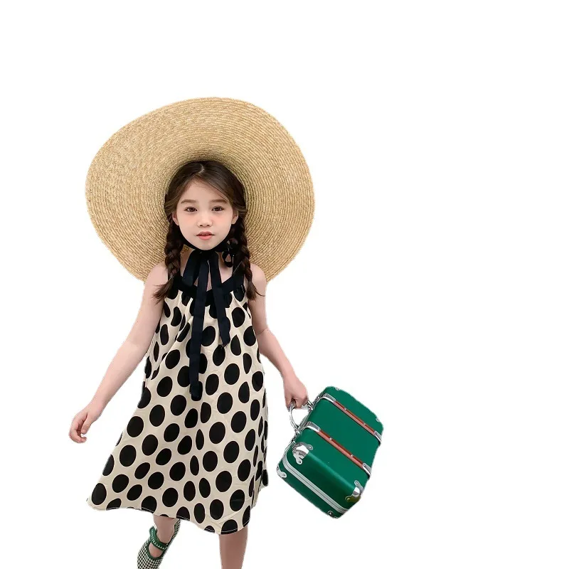 Vestido de verano para niñas, vestido de lunares o rayas con cuello en V, sin mangas, negro con crudo, hermoso y colorido muy fashion para niñas