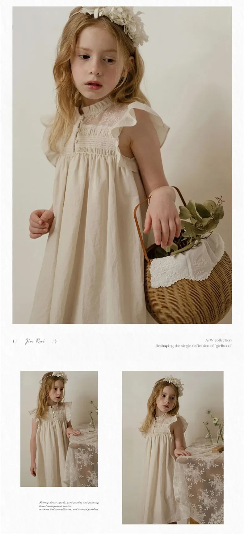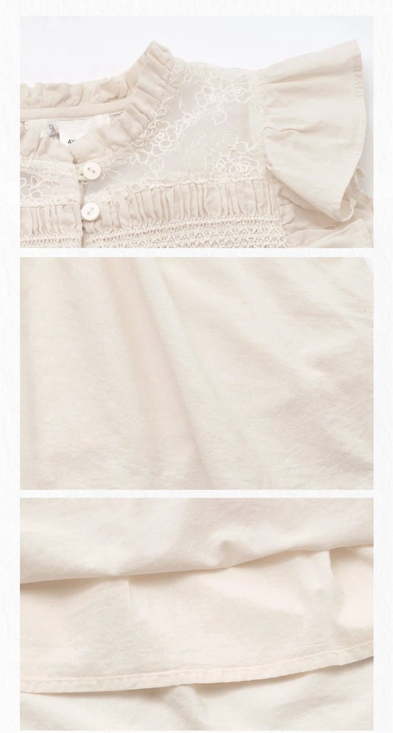 Cotton Hand-Embroidered Flying Sleeves Beige Clothes New Girls Handmade Smocking Dress Pure Birthday Prince Summer 2024