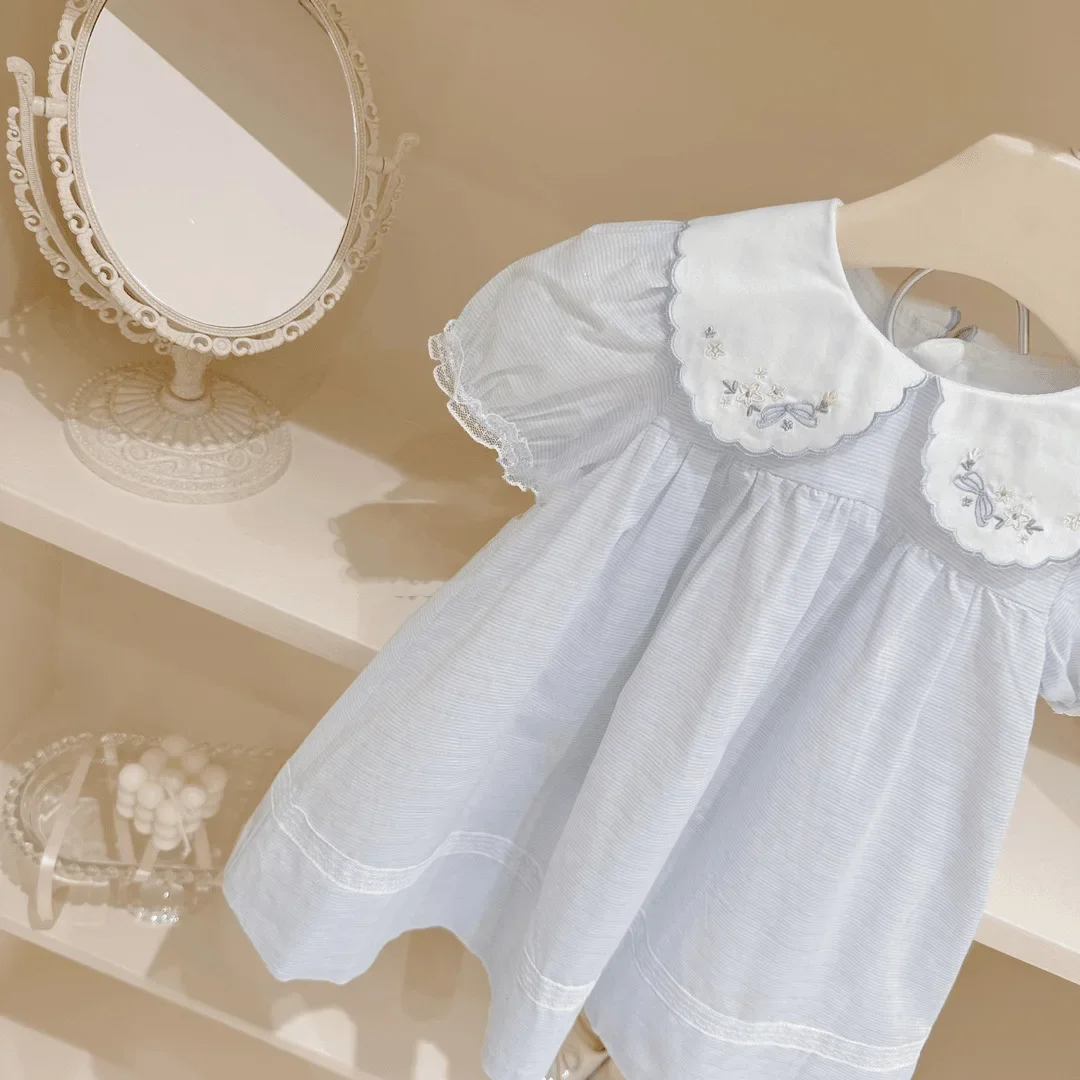 Vestido de verano para niñas, vestido de encaje bordado francés, lindo vestido de princesa con mangas abullonadas