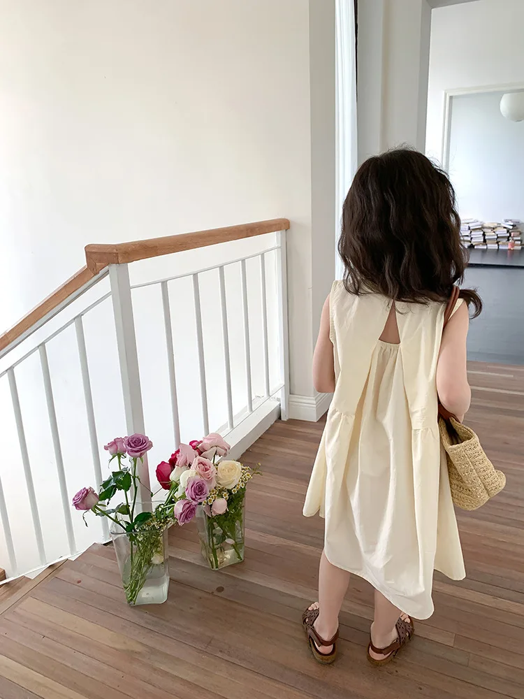 Lindo y amplio vestido sin mangas en color sólido para niñas para muchas oportunidades en verano