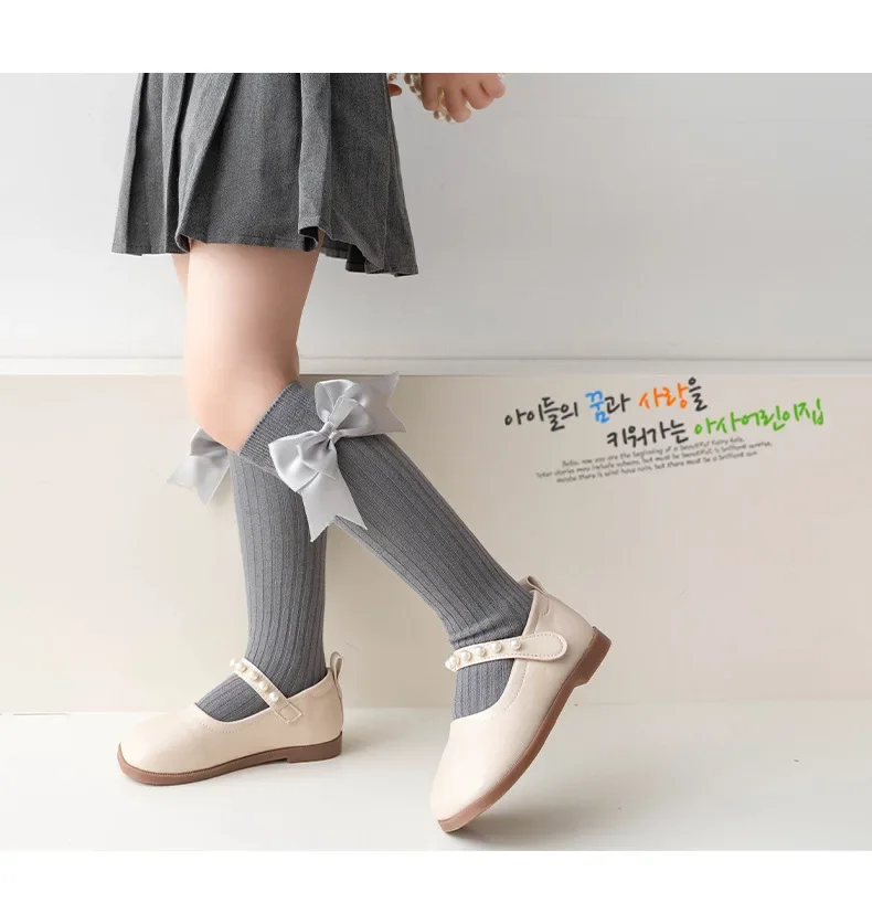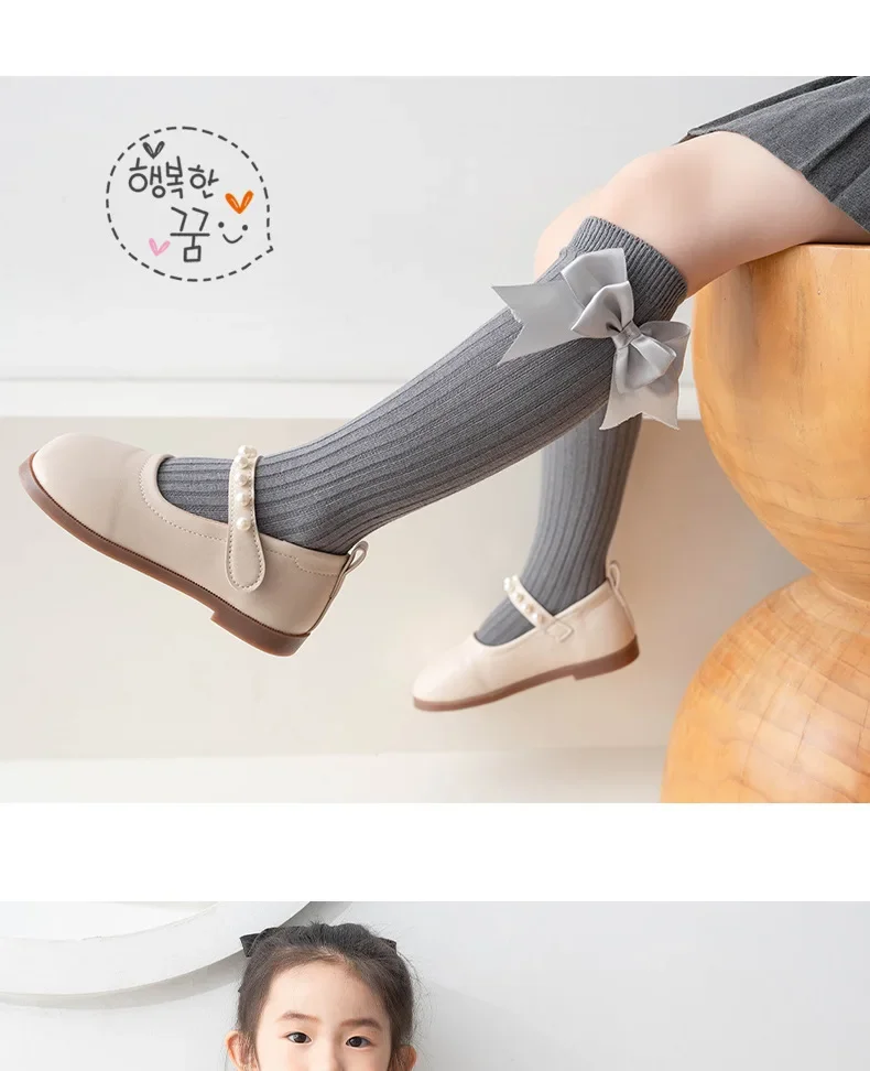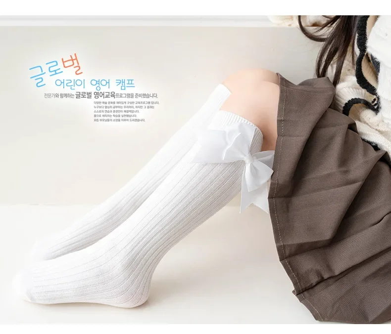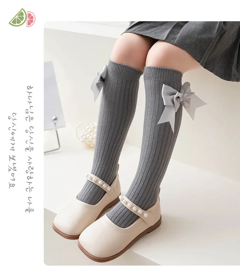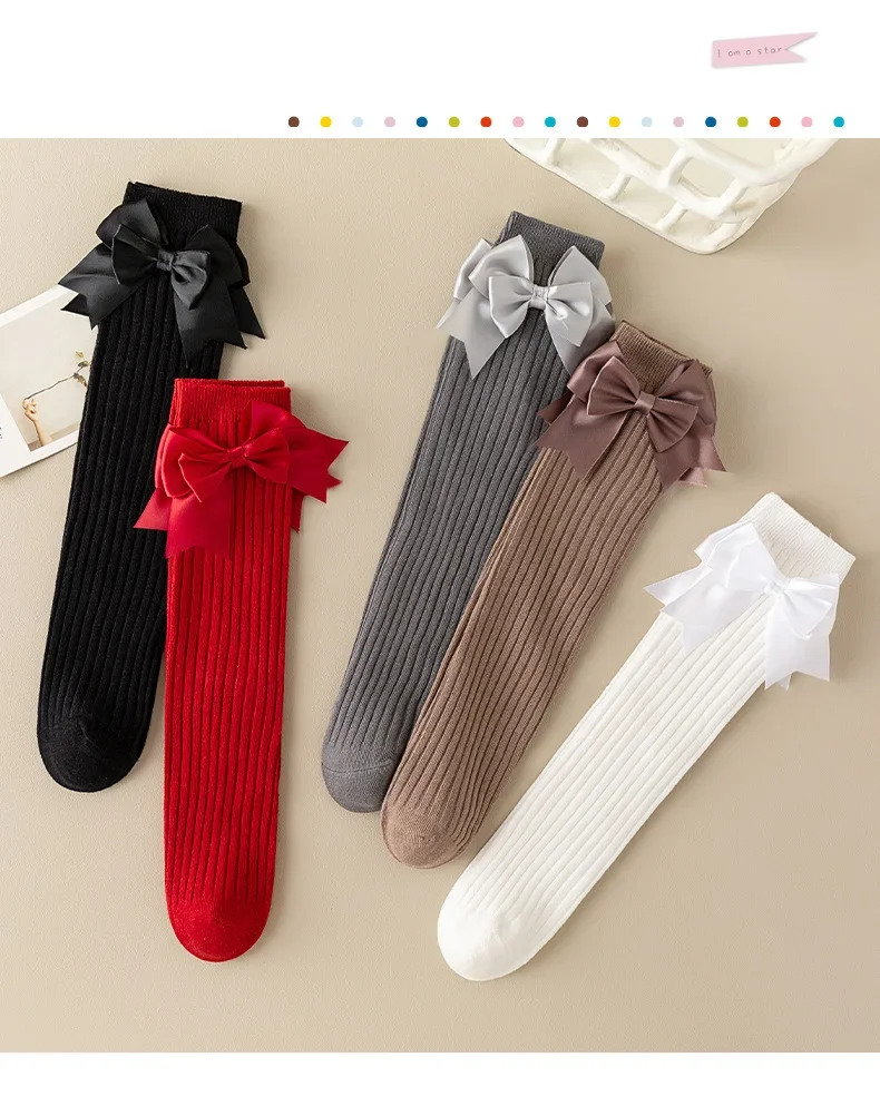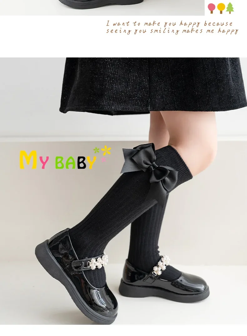 Calcetines largos con lazo para niñas, Calcetines de moda española de colores sólidos para niña, de primavera y otoño, estilo uniforme escolar