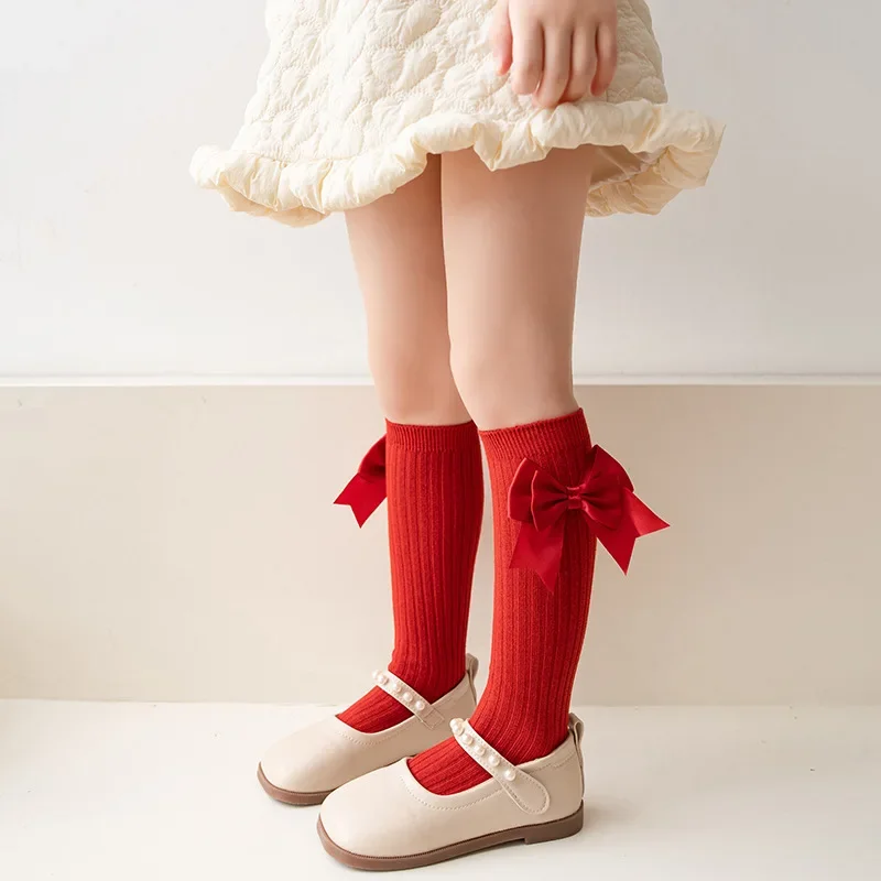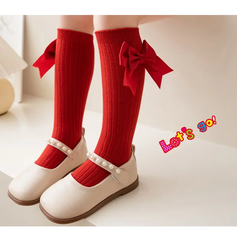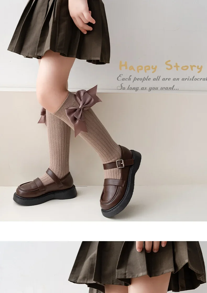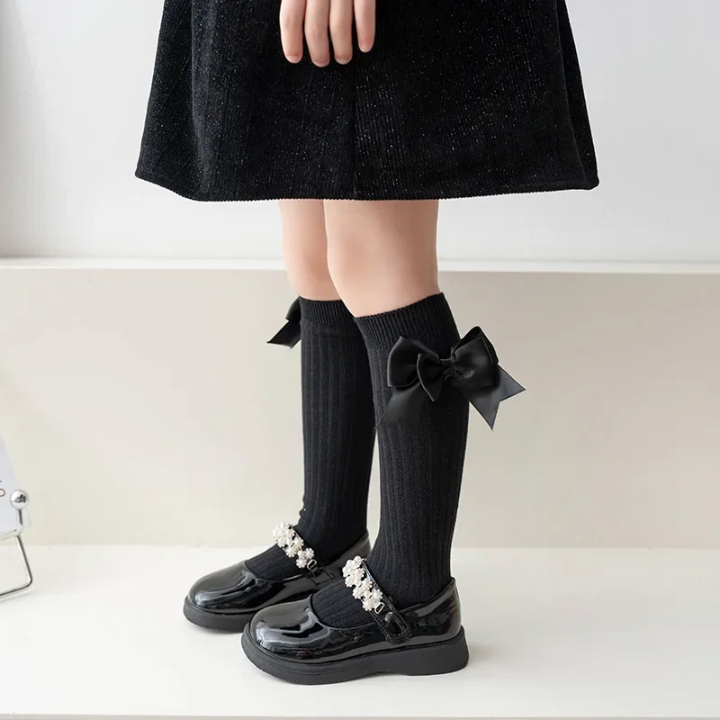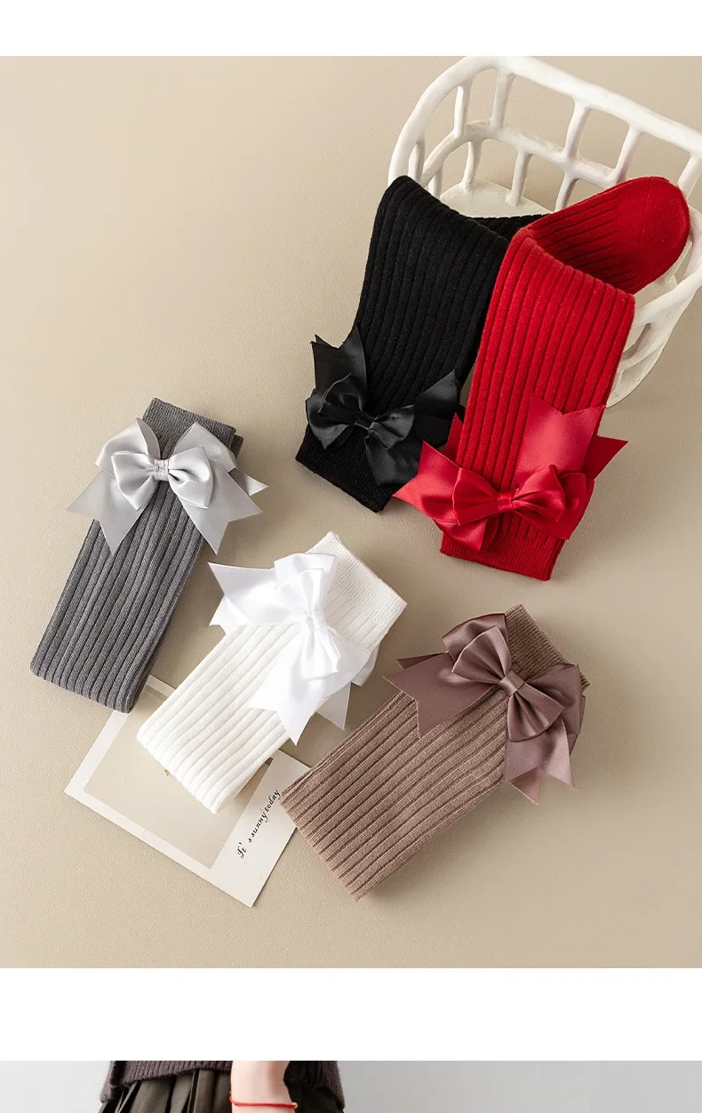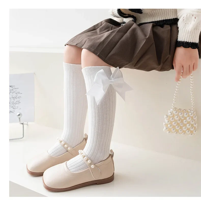 Calcetines largos con lazo para niñas, Calcetines de moda española de colores sólidos para niña, de primavera y otoño, estilo uniforme escolar