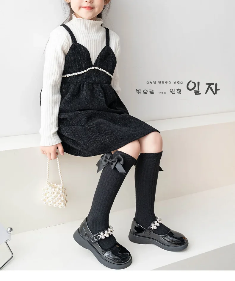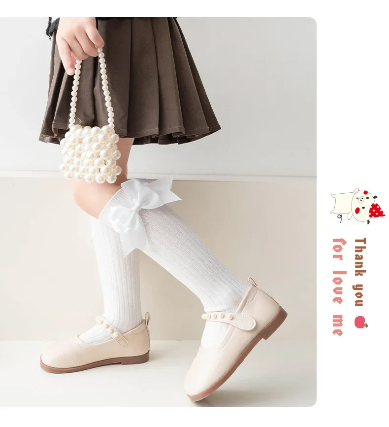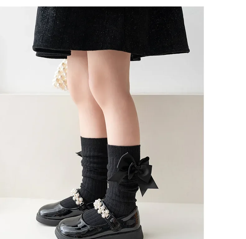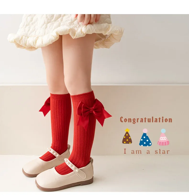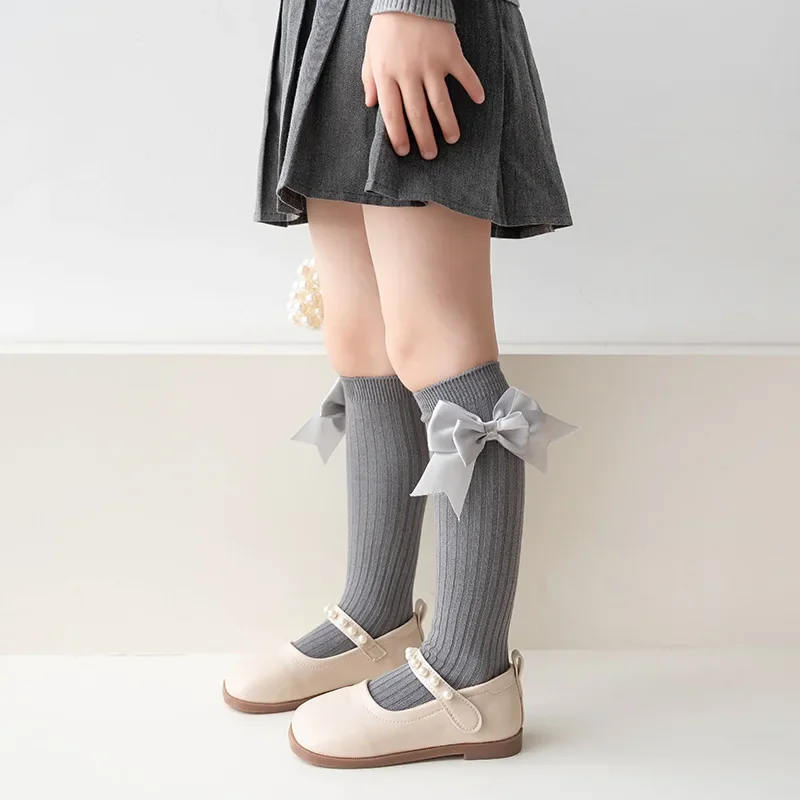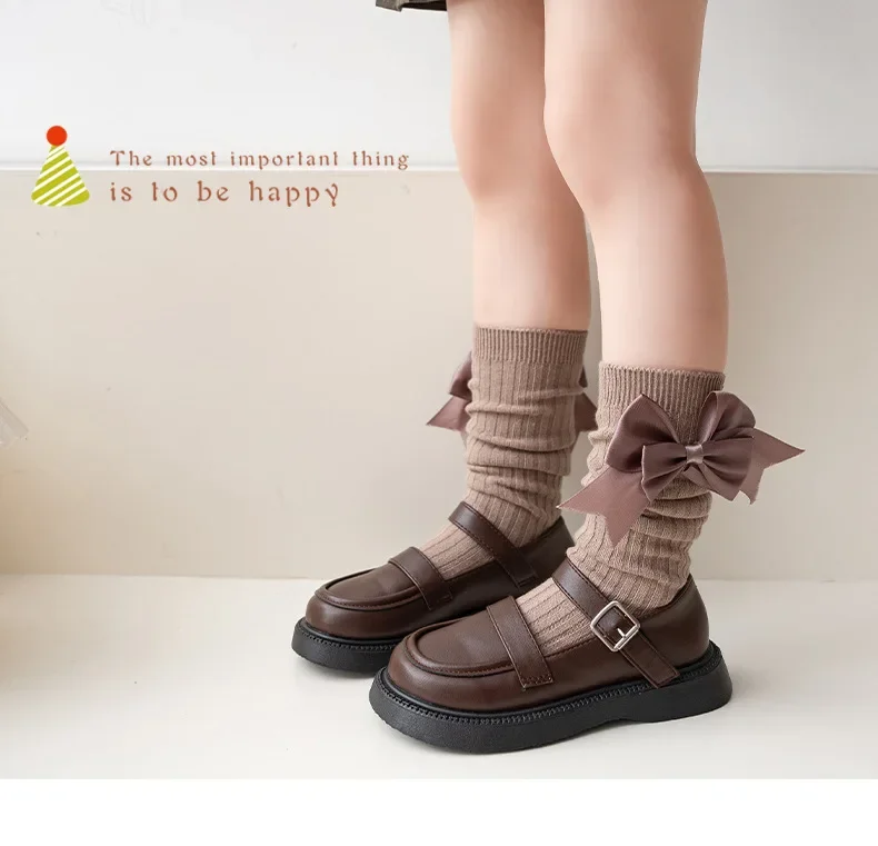 Calcetines largos con lazo para niñas, Calcetines de moda española de colores sólidos para niña, de primavera y otoño, estilo uniforme escolar